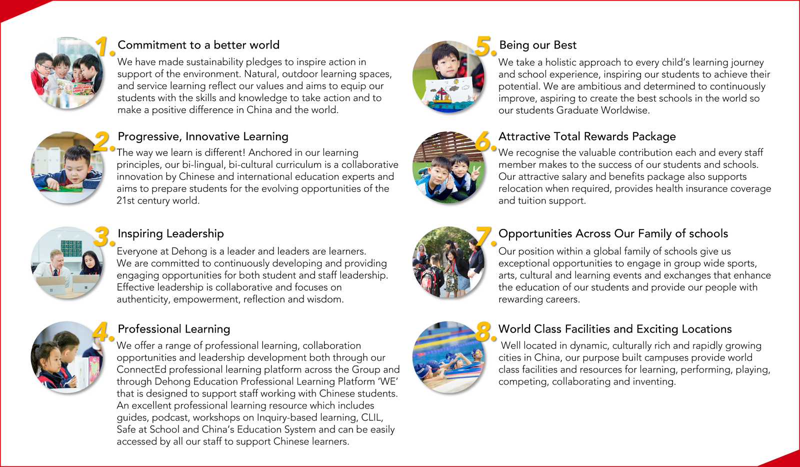 Dehong seeks to attract, grow and motivate the best people to achieve our commitment to putting students first. As an employer of choice, we offer exceptional employee experiences with inspirational leadership. This is supported by an attractive rewards and benefits package.